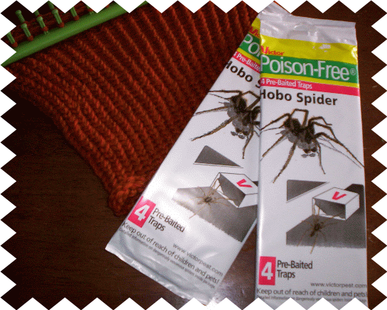 Needless to say, we went out and bought some traps. We have a box set into the ground made for holding fire wood, which right now only has one neatly wound hose, right outside our back door off the patio. I had my husband, wearing thick gloves and armed with a hammer, open the lid so I could toss in a trap. On the bottomside of the lid, we immediately saw 6 large hobos and some assorted babies hovering in their webs. My husband promptly pounded them one by one with his hammer. Then, as if this wasn’t enough, we noticed that they had company…2 black widows were slinking around, hoping we wouldn’t spot them! My husband quickly dispatched them as well, while I…brave little me, (yeah, right 😉 ) stood shuddering and scratching. We didn’t buy those traps any too early, let me tell you!