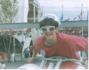 Okay, as the hat says…this is the 80’s…so of course I’m sporting those huge sunglasses that take up my entire face, and make me look like some kind of weird bug! I look like I’m straight out of the movie “Better Off Dead”!