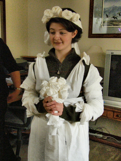 My daughter Emily was the model in our group, and my Megan got to be the bride in another group…I think everyone was thinking “the smaller the model, the less wrapping in TP!”