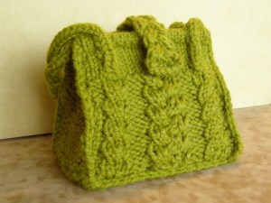 Okay…here it is! The official optional version of my little baggy. I’m just about done with the pattern, and will let you know as soon as it is posted to Peggin’ Pages, so you can start creating your braided cables bag! π