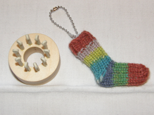 Next on the list of goodies is this sweet little tiny sock I made as soon as I opened my box which contained my new Sock Blockers from dalooms… which I was so excited to hear that they are now selling these babies! 🙂 I made the sock on their little tiny loom to fit the cute little sock blocker key chain I got with