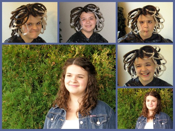Another thing we’ve been doing is playing beauty parlor. Last weekend I gave both my dd’s perms! This was my youngest’s first ever…she kept saying her elder sister and I were beauty vultures, with all the ideas we kept throwing at her, lol! In the end, we decided on just a trim on the long single length ends, and a spiral perm…simple but stylish, don’t you think?
