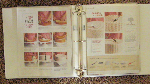 crate holds all magazines to be recycled and in the box are the ones I’m pretty sure I need to keep. The articles out of the magazines that I’m not keeping that I feel will come in handy (someday, lol!) I’m organizing into pocket pages in these big 3 ring binders. 🙂 I think I’m doing pretty good so far… look at all the ones I’m getting rid of! (pat, pat, pat on the back)