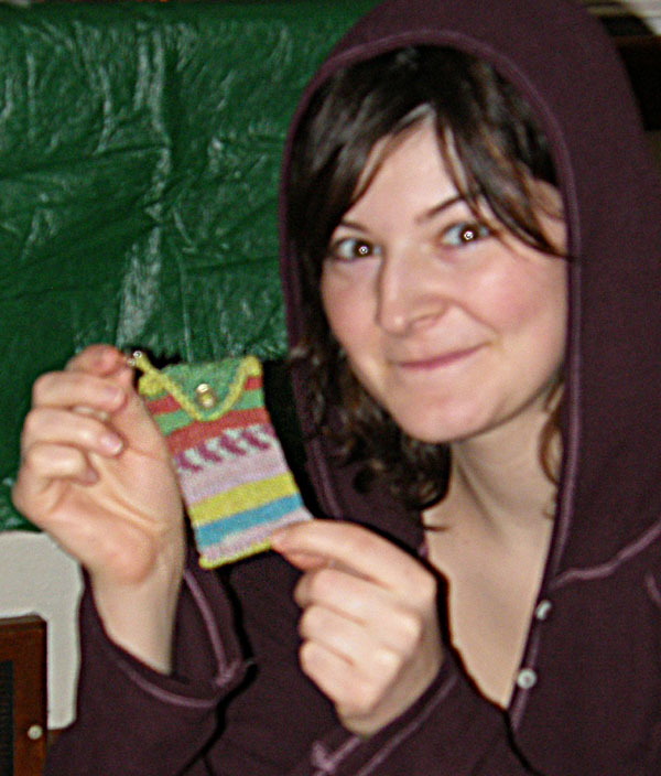 Itty Bitty Bags! These tiny projects was created as Christmas gifts for my girlies this past holiday. They were needing little pouches for their MP3 players, so I whipped these little cuties up in no time flat with some yummy self striping sock yarn. Please enjoy this project for it’s many uses (my youngest daughter has taken to using hers as a secret cash stash, or jewelry tote, whichever is needed most at the time, lol!) and easy versatility to convert to any size needed.