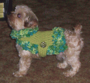 Okay…that should do it! I hope this helps you when creating this project, and gives you the freedom to create your Pooch Parka in other styles and colors of yarns for an unlimited variety of finished looks. 🙂 As always, I’d love to see your pictures, and would be honored to post them in the Clique Pics Page! ***Also, please feel free to post any questions you might have about this pattern right here in the comments section of this post, and I’ll answer here as well, so that we can keep all the learning process in one place for everyone’s benefit.