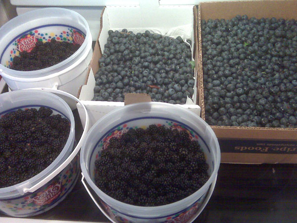 You got quite the berry haul, too! I’ve just finished processing 14 quart bags of okra as of 1:00 a.m. last night – the berries look yummier 😉