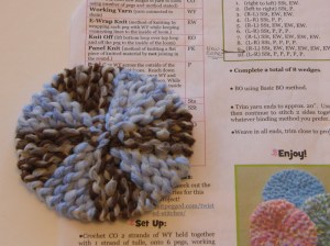 When you’ve completed all eight wedges of contrasting colors, you’ll BO and finish as usual…although you will have 2 additional sets of tails to weave in.Β π