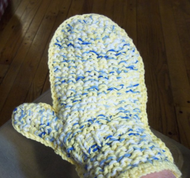 Linda Jones converted her mitt to be a side thumb version for a better fit for her…that’s a terrific example of making a project what YOU need it to be…great job, Linda! 🙂