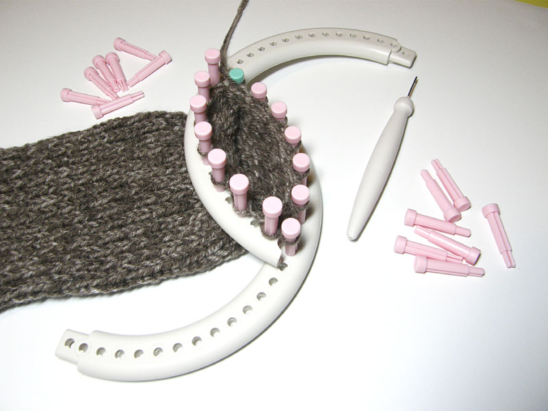 You can actually configure your loom at the very start of your knitting in this way, casting on your required number of stitches.
