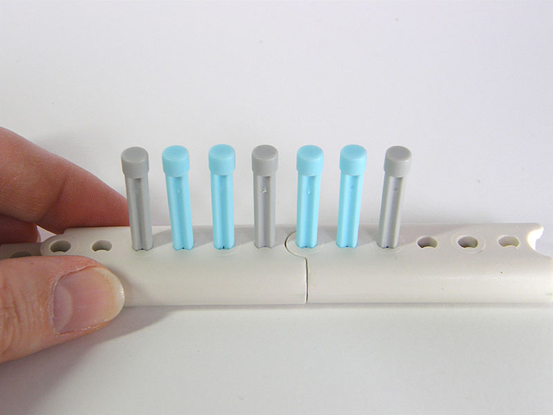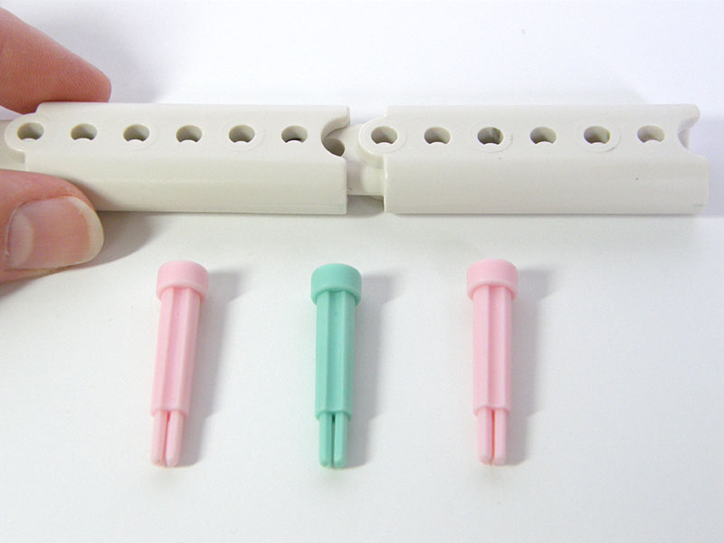 I love the fact that there are two different colors of each size peg! This is extremely handy for marking stitch patterns, or keeping track of your anchor peg.