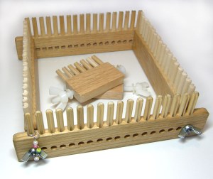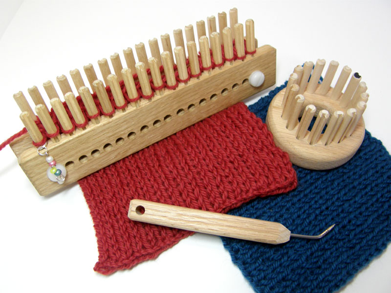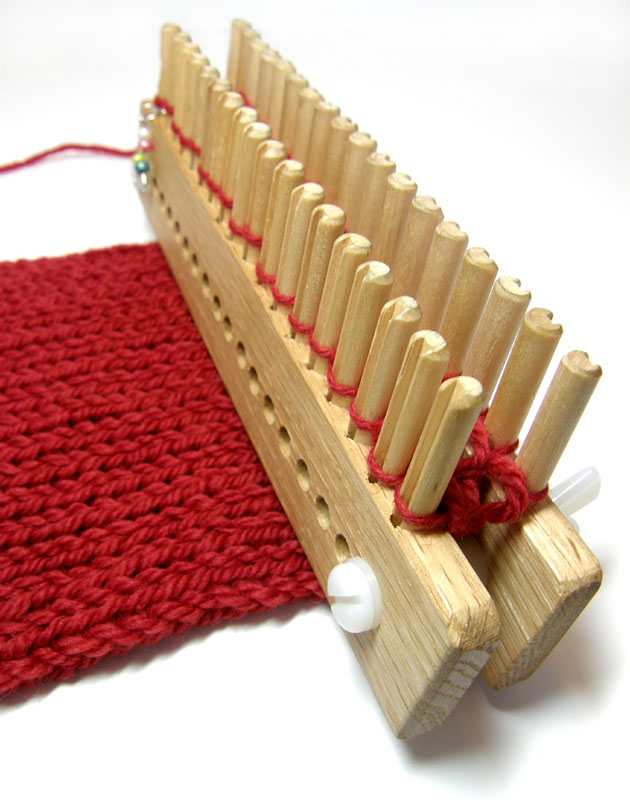The looms are lovely with their handcrafted hardwood construction. I really like that even every peg is carved by hand with nice deep grooves for working stitches.