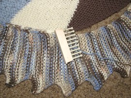 She said that she was a bit envious of the fact that I had the space and props to take decent photos of my projects. I wanted to let you all know that you can take excellent photos of your loomy goodies, even if you don’t have much space to spread out, or a even clean and organized house (which, let me tell you, mine frequently looks like either a tornado has rampaged through it or an entire civilization of dust bunnies have taken up residence, lol)!