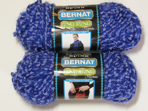1) one full and one only slightly used (lol) skein of sparkly blue Bernat Ping Pong yarn!