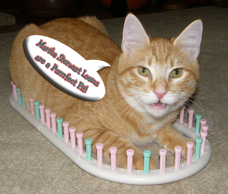 New comment on your post "Martha Stewart tries her hand at Loom Knitting~" Comment: Hi Bethany I noticed that DA Looms' website shows that the store is closed and I LOVED those looms! So I came across this blog in search of a new place to get my looms. I'm looking for something similar to the FG Baby Afghan loom, would the MS loom be similar to that in any way? I was looking at the oval picture of the loom with your cat, would that be about that size? If not, do you know of anywhere I can get FG and EFG looms that would be similar? This loom looks like it offers so many different solutions and I've looked at it many time. Thanks for doing this, it definitely answered some questions for me. Thank you!