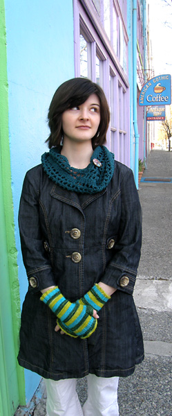 looking to the side with mitts and cowl