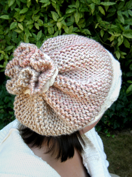Cabled Katrina from the side...cute faux pom pom & twisted tie!