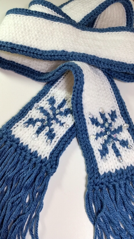 Beaded Snowflake Double Knit Scarf (and my fave) Faux Cabled Cowl