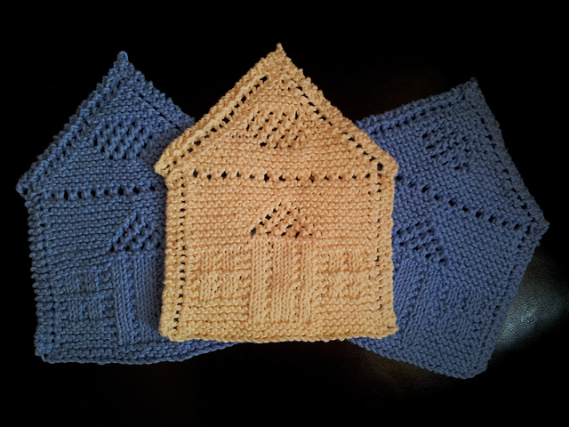 Here are some really cute house shaped wash cloths, also needle knit, of which two were gifted during a family gift exchange: