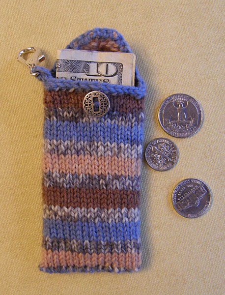This is just the perfect little parcel, specifically made to stash those tiny things that we like to carry around with us… whether it is our cash stash, our mp3 players, a favorite lip gloss…you name it! It’s so easy to whip one of these little guys up on your EvenKnit Sock Loom or other fine gauge loom of your choice.