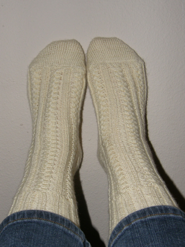 Cabled Socks~ Loomed as the sample for the book Loom Knitting Socks by Isela Phelps.