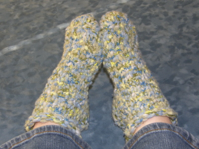 Plushy Slipper Socks…pattern by Isela Phelps.